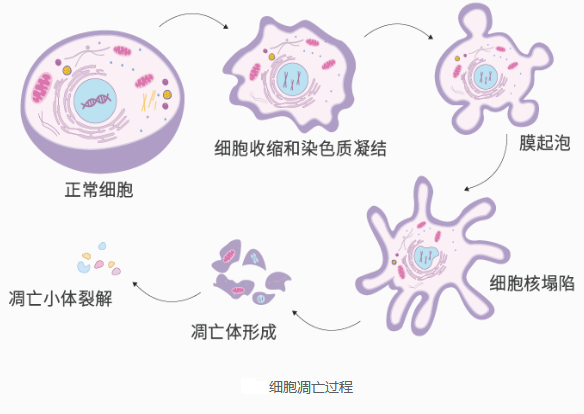 細(xì)胞凋亡(Apoptosis)是由基因控制的一種程序性細(xì)胞死亡(PCD)模式,往往伴隨著染色質(zhì)凝結(jié)、細(xì)胞超微結(jié)構(gòu)的改變、胞體皺縮、質(zhì)膜起泡和DNA片段化等特征。細(xì)胞凋亡是生命的基本現(xiàn)象,是維持體內(nèi)細(xì)胞數(shù)量動態(tài)平衡的基本措施,一般通過檢測DNA片段化水平和半胱氨酸蛋白酶(Caspase家族)激活程度來判斷凋亡的發(fā)生。