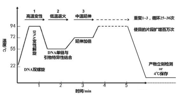 1. 高溫變性:所謂變性是95℃左右時DNA雙鏈打開的過程,使之能夠與引物結(jié)合,為下面的反應(yīng)做準(zhǔn)備。但是注意考點:這里的DNA不只是我們加進(jìn)去的模板DNA,還包括擴增出來的DNA,體系里但凡是雙鏈,高溫都能給他打開了。